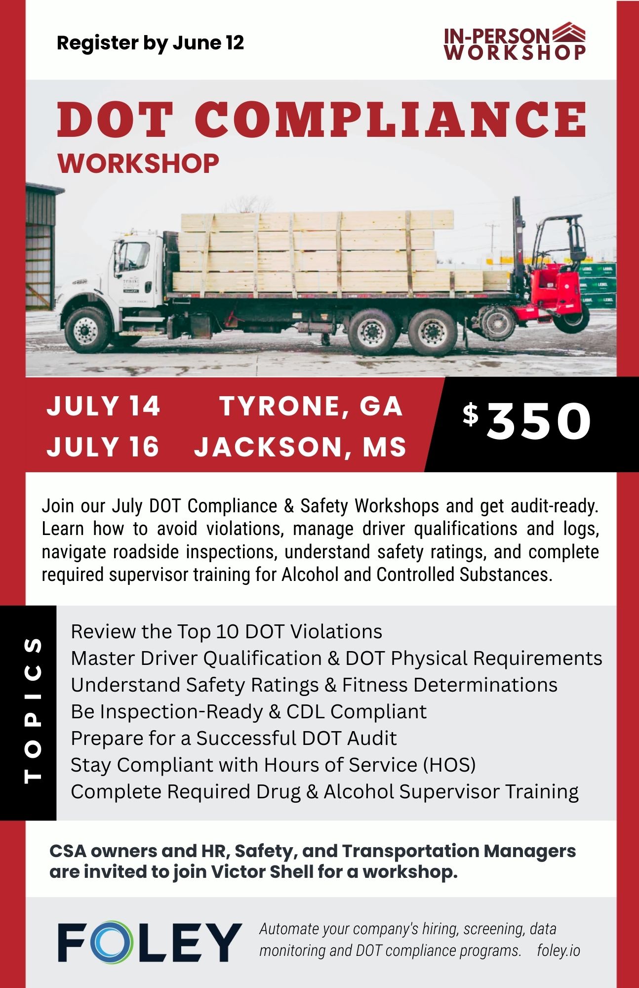 Our DOT Compliance Workshops are sponsored by FOLEY