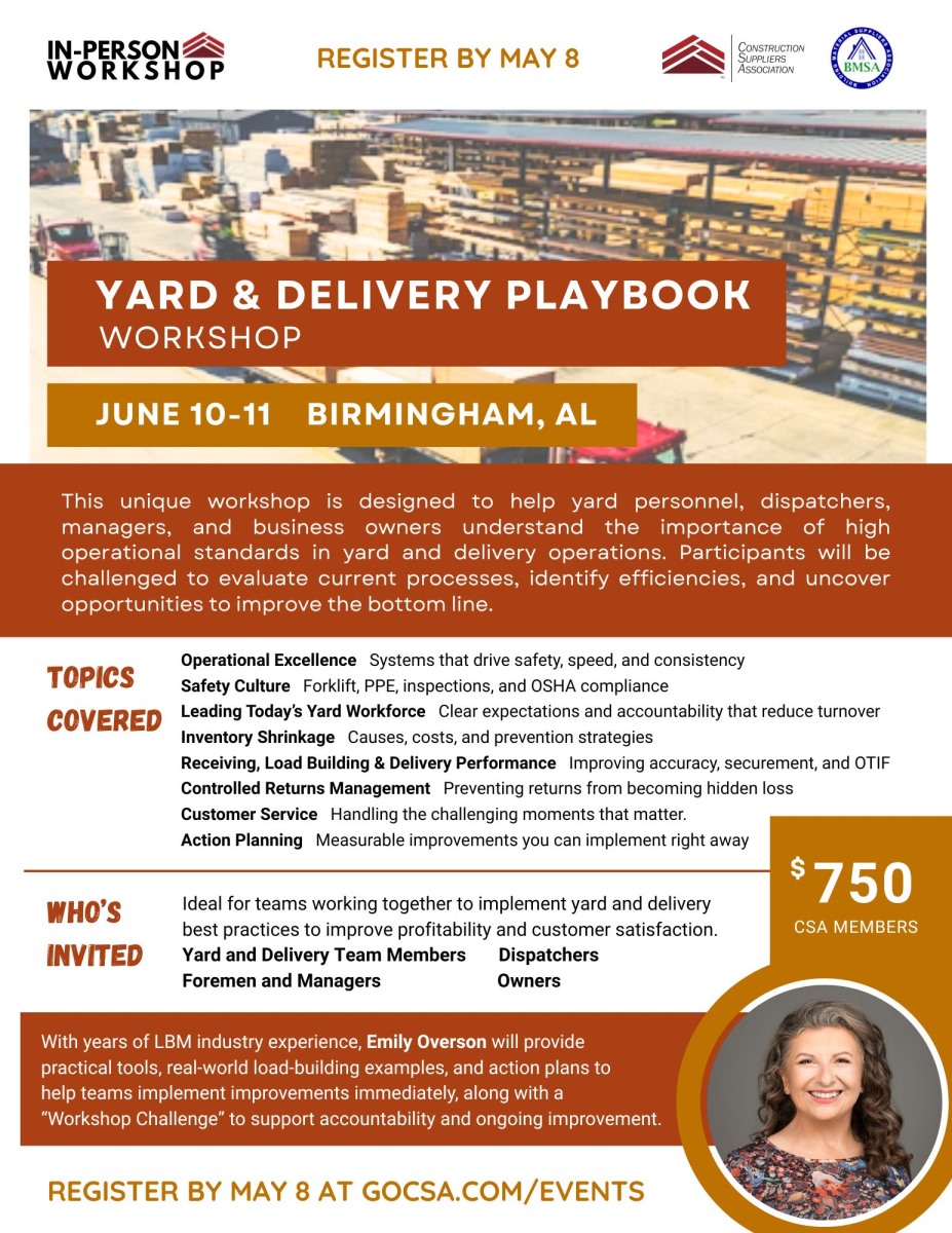 This interactive, in-person workshop is designed for yard personnel, dispatchers, managers, and business owners who want to strengthen the performance of their yard and delivery operations. Participants will explore how strong operational standards drive safety, efficiency, and consistency while directly impacting the bottom line.